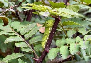 実家の庭のサンショウの木にアゲハの幼虫がいました。 これまでは見つけてもすぐに鳥にやられるのかいなくなってしまうことが多かったです。 サナギを見たことがほとんどありません。 今回はどうでしょうか。