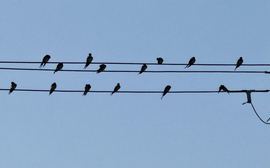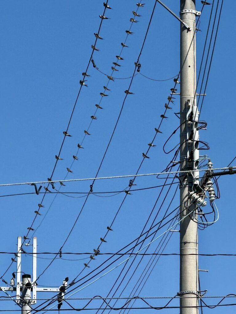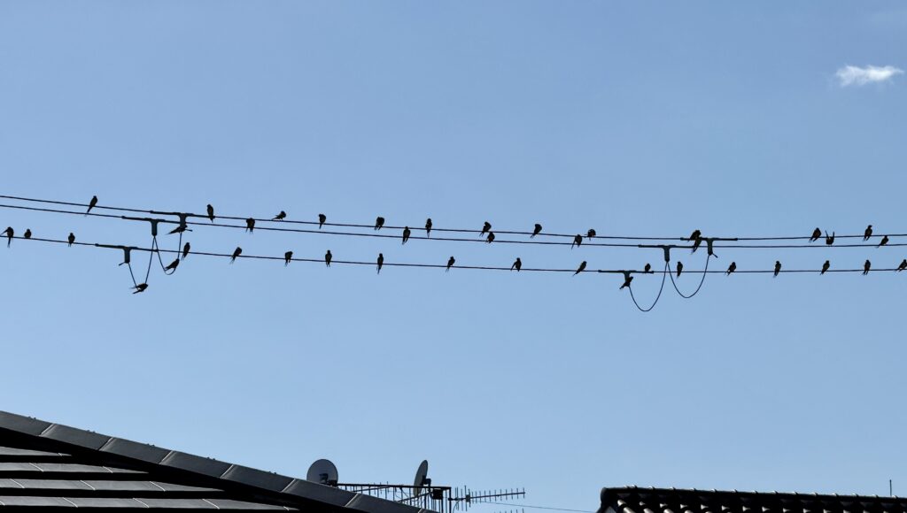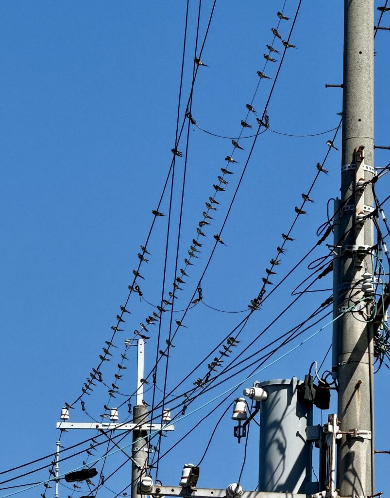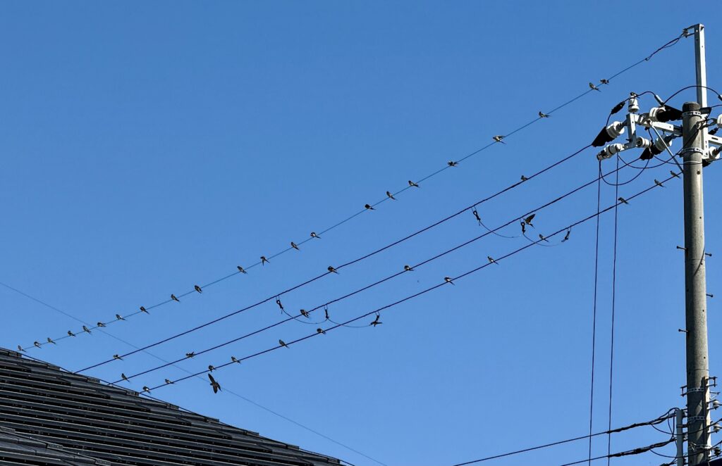 毎年この時期になると、家の近くの電線にツバメたちが集合して南方へ旅立っていきます。