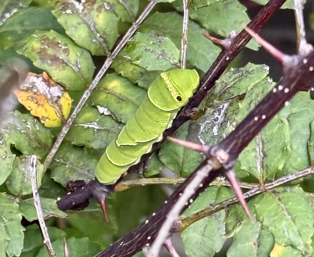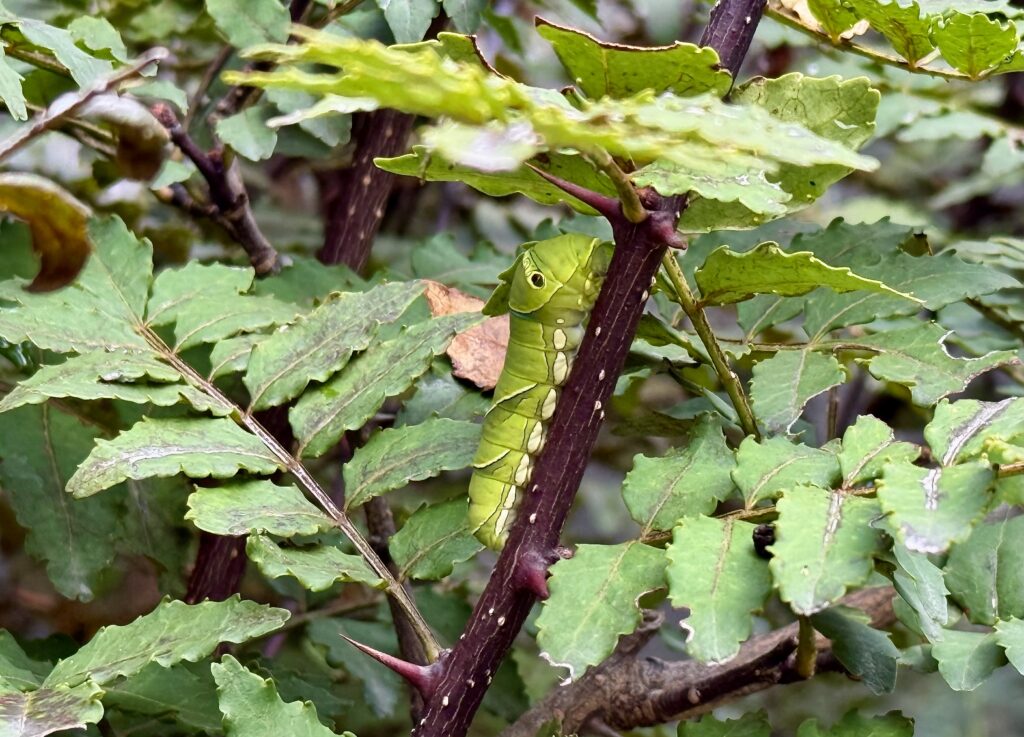 アゲハの幼虫 2025.10.26 2025年10月29日 最終更新日時 : 2025年10月29日 RONNIE 実家の庭のサンショウの木にアゲハの幼虫がいました。 これまでは見つけてもすぐに鳥にやられるのかいなくなってしまうことが多かったです。 サナギを見たことがほとんどありません。 今回はどうでしょうか。