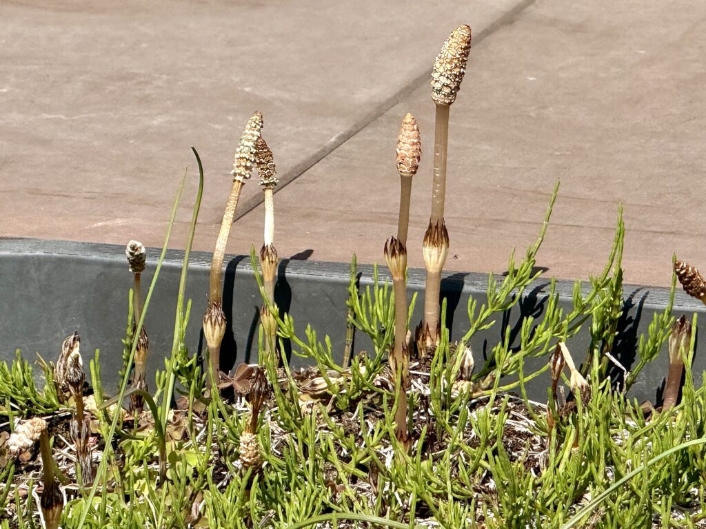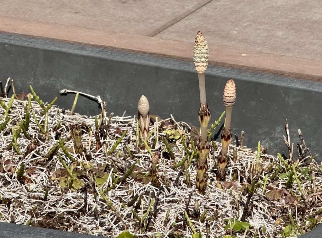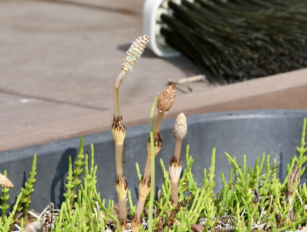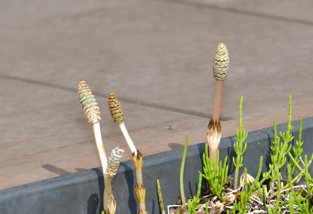 ツクシは寿命が短く、胞子を出し終えるとすぐに枯れてしまいます。スギナが生い茂っている時期には、すでにツクシの時期が終わって消えてしまっていることも多いです。