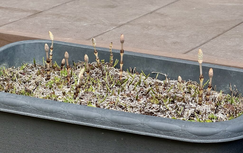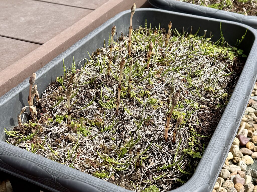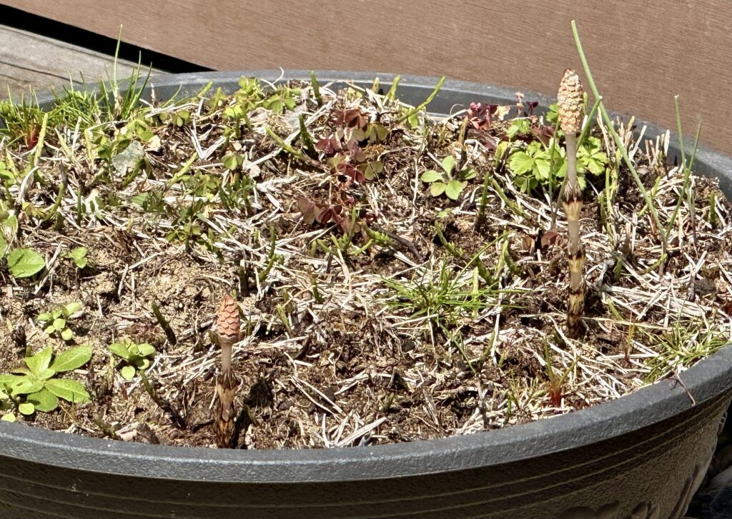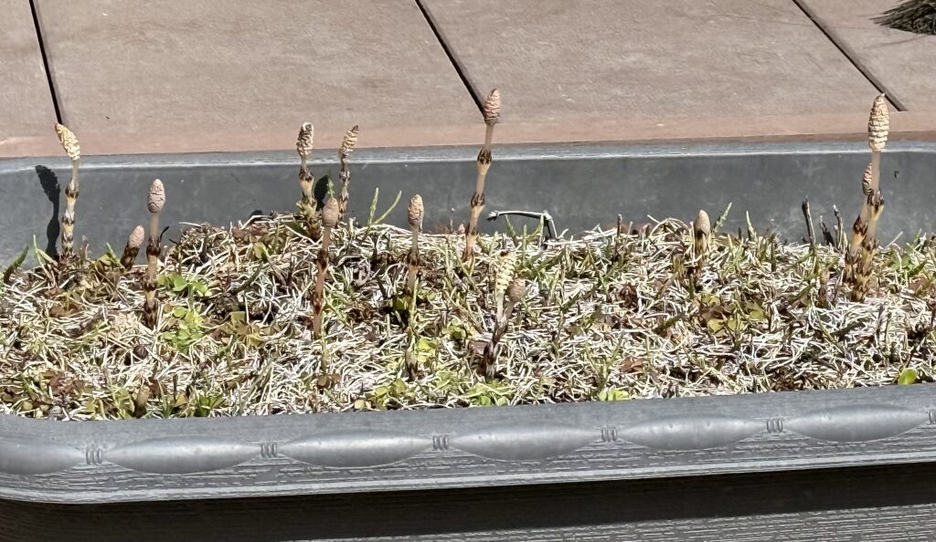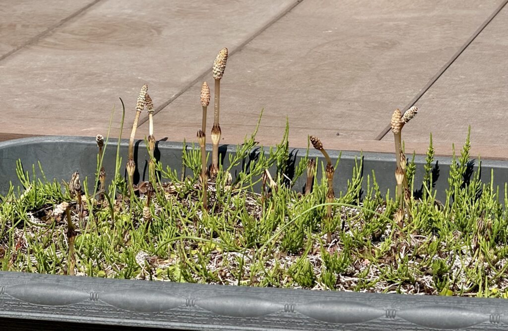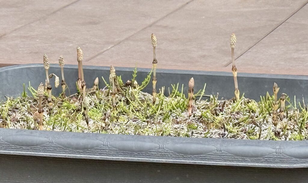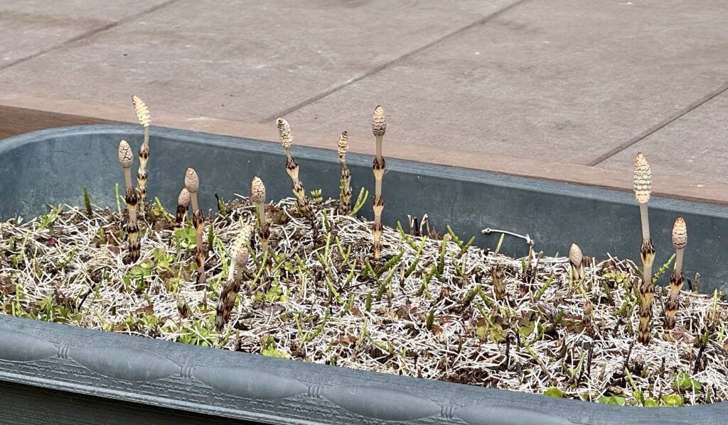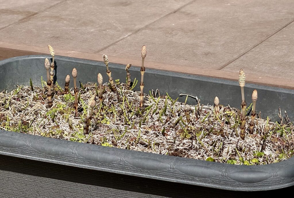 プランターのツクシもほぼ終わりになりスギナが成長してきています。
