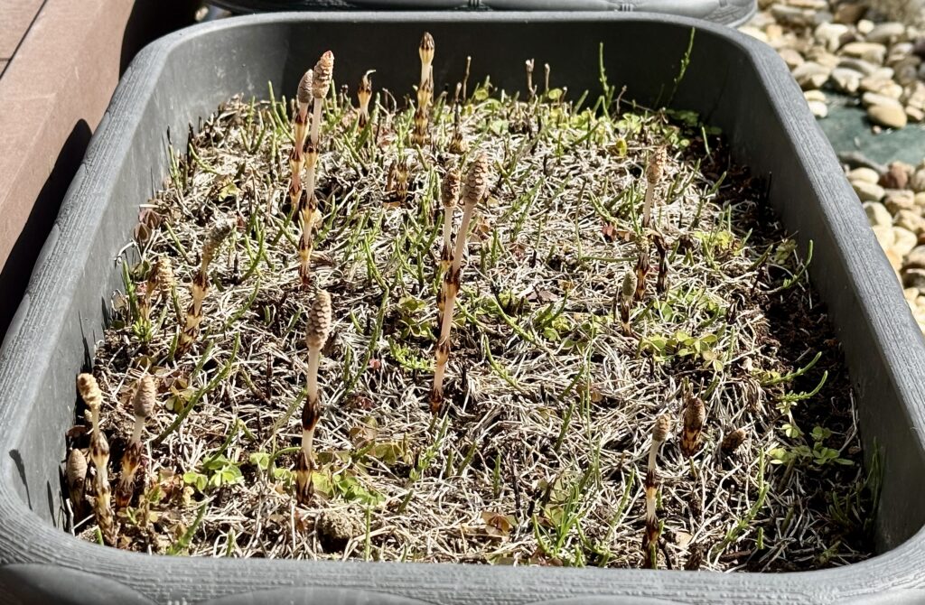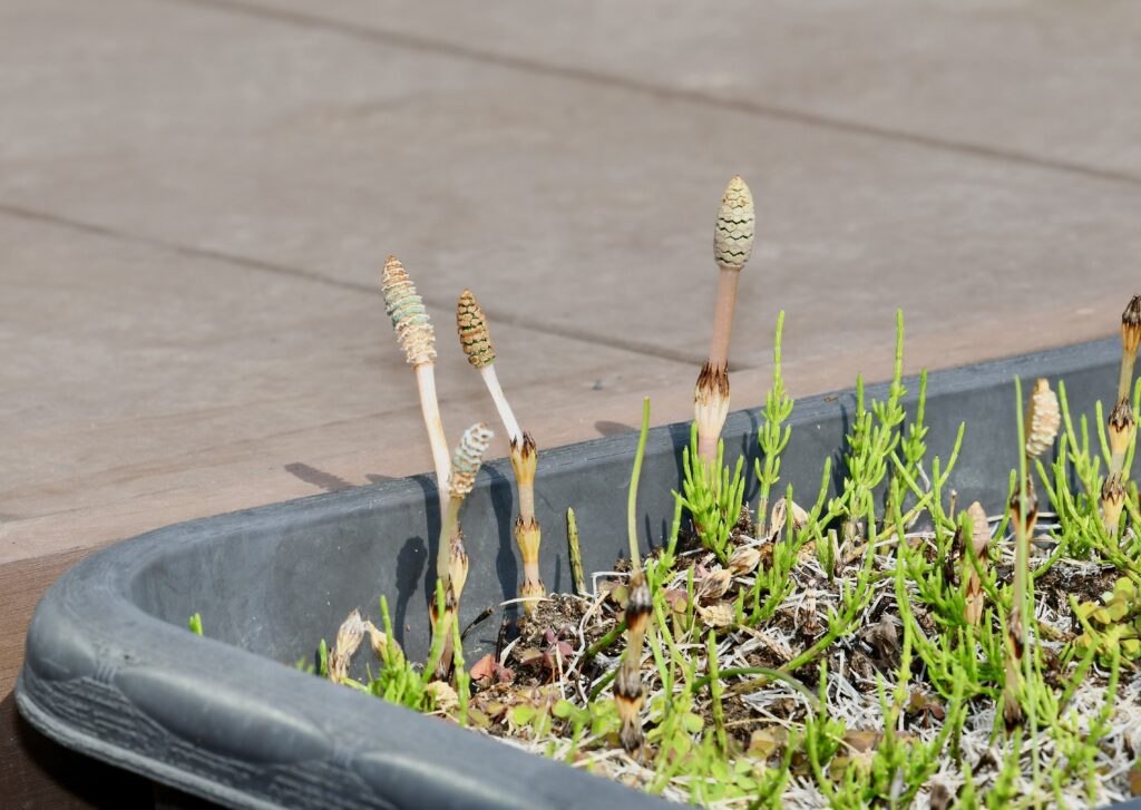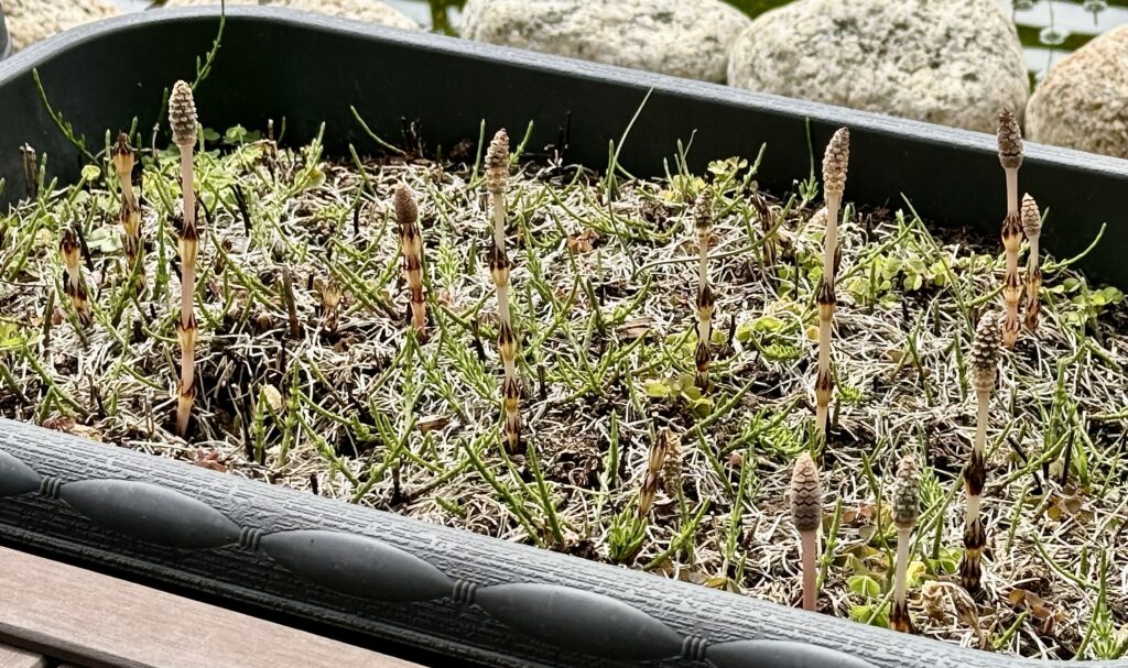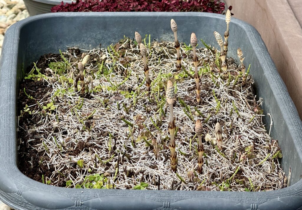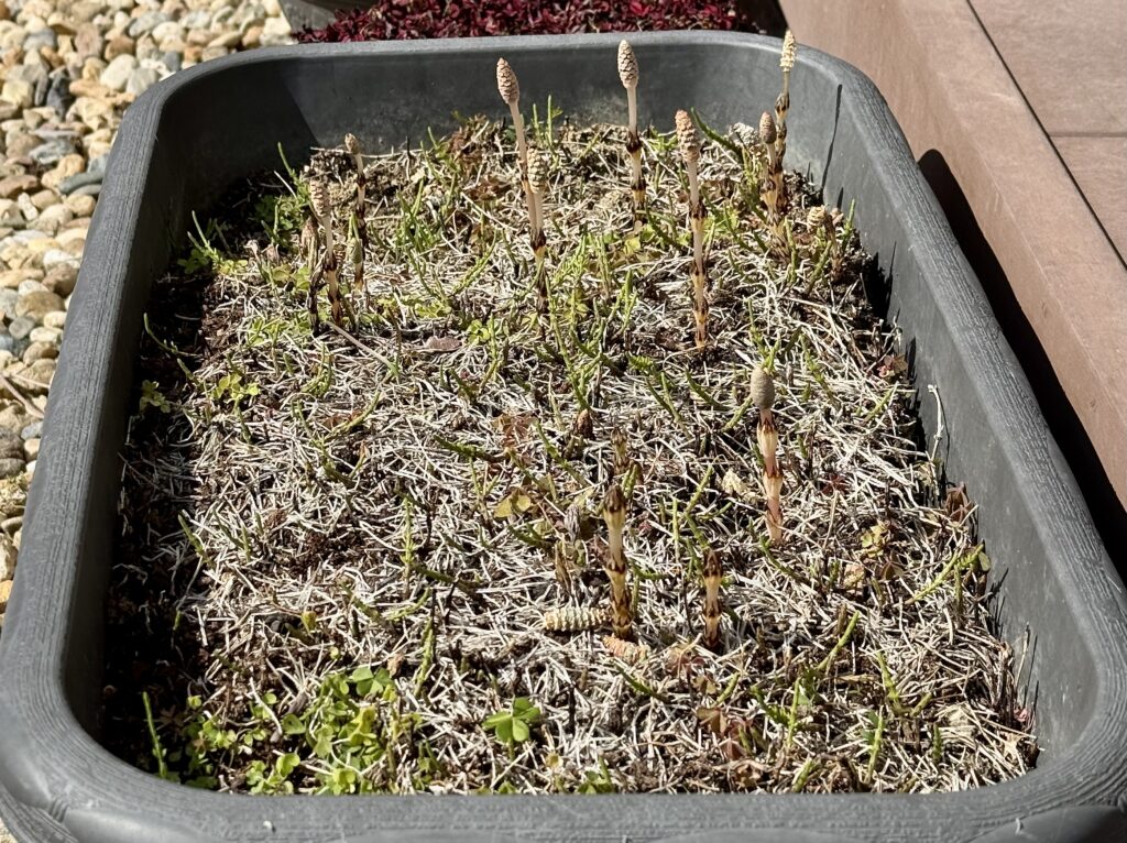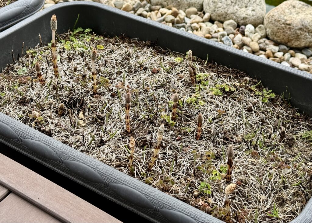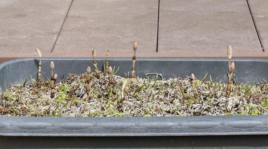 プランターのツクシもほぼ終わりになりスギナが成長してきています。