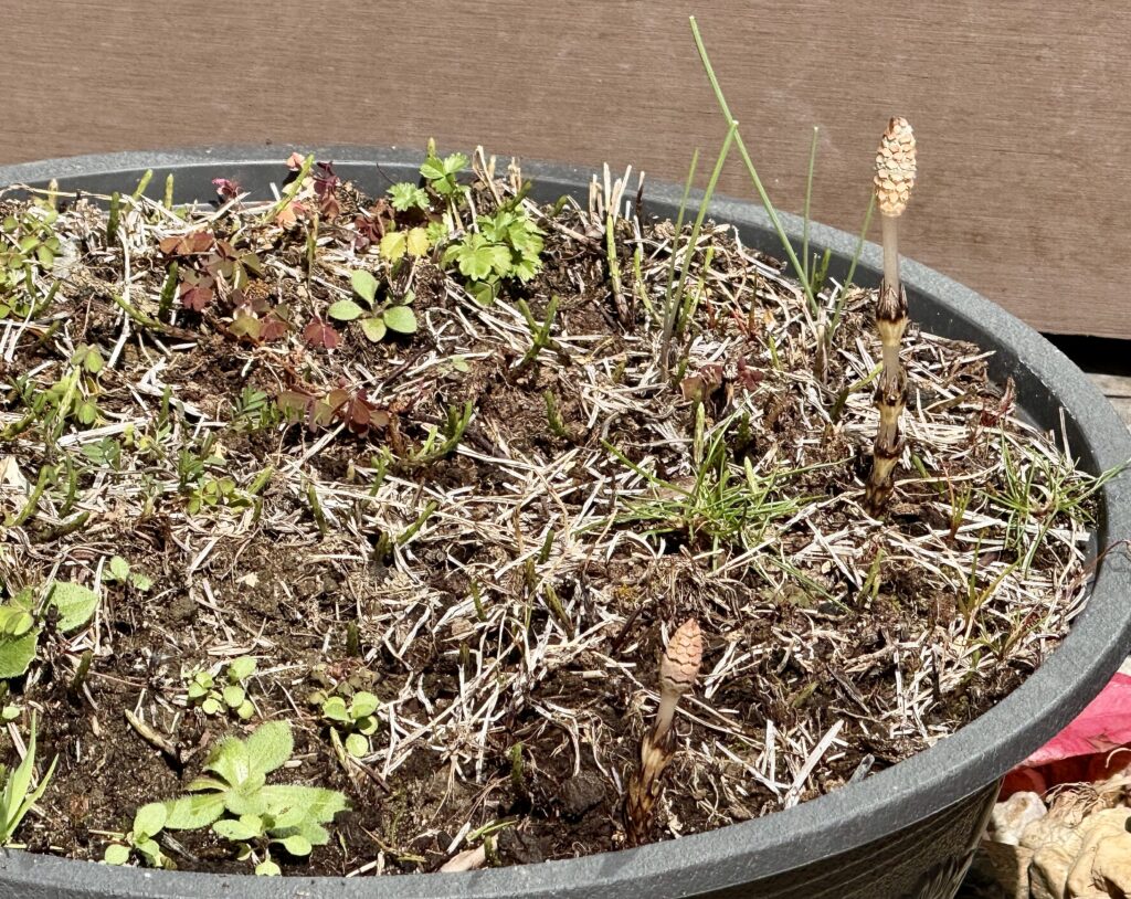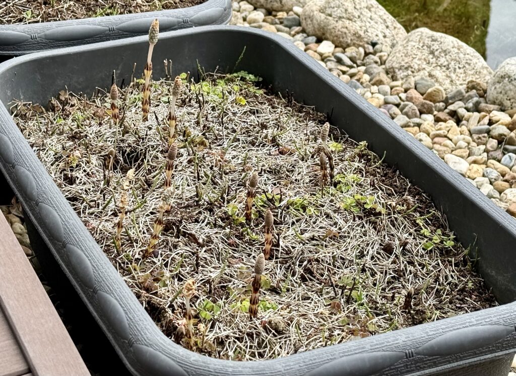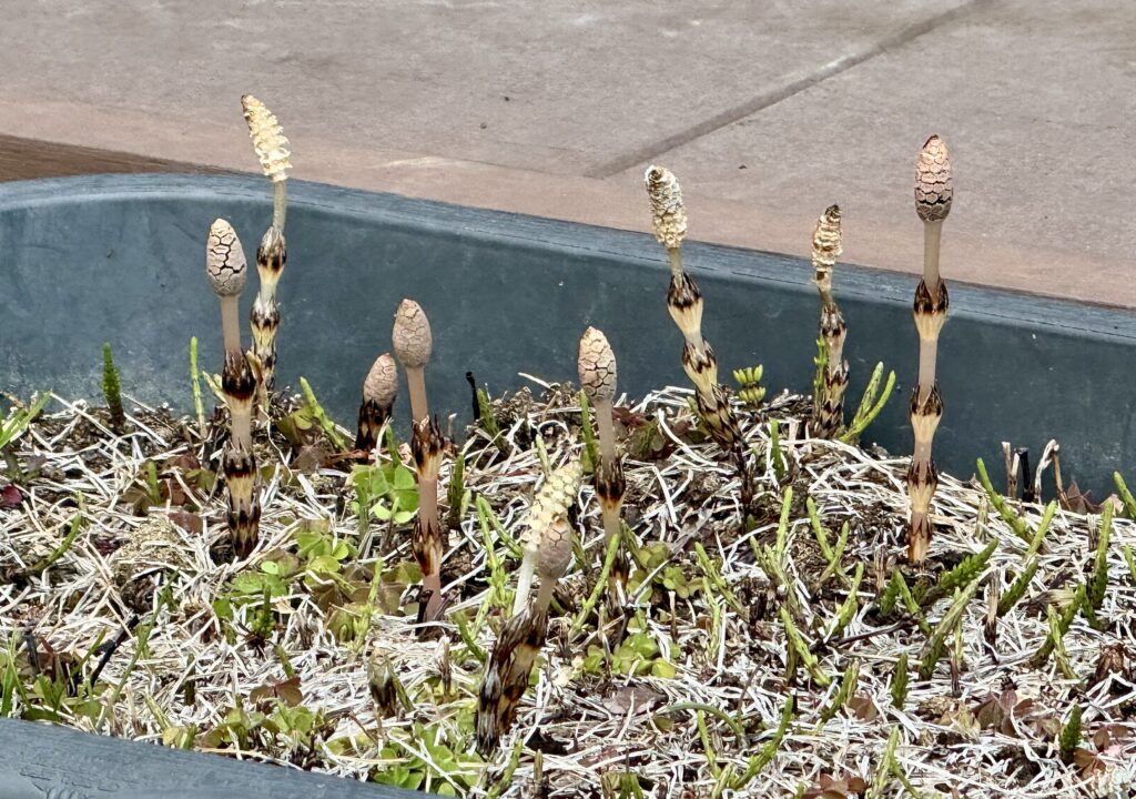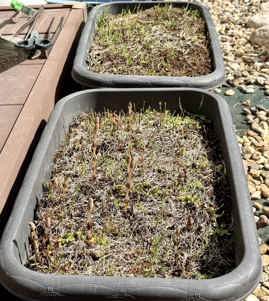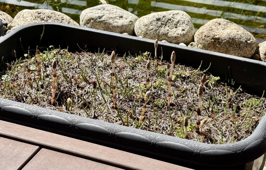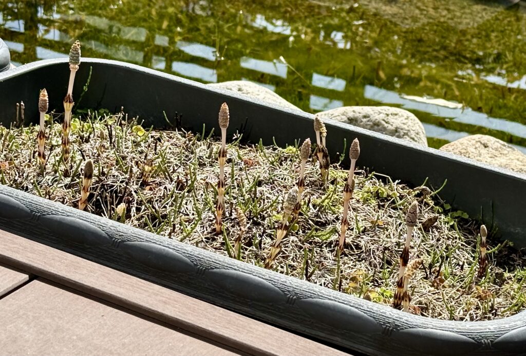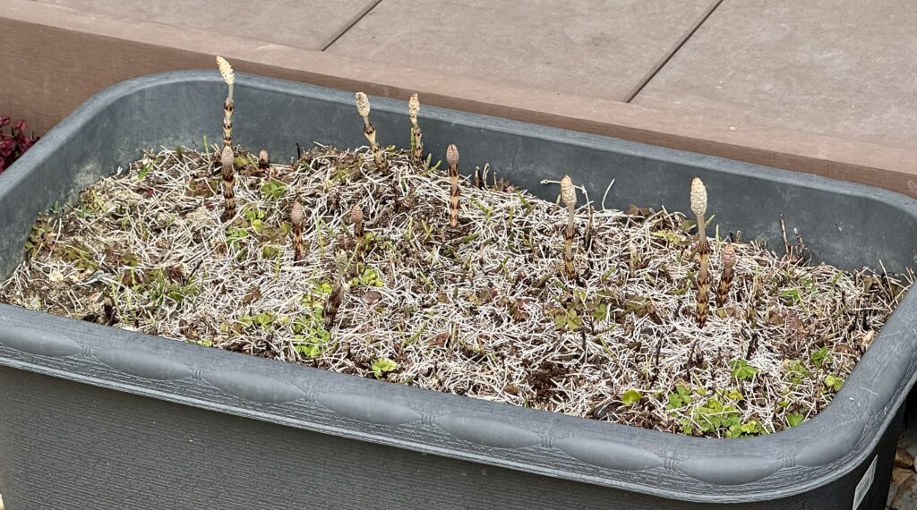 プランターのツクシもほぼ終わりになりスギナが成長してきています。