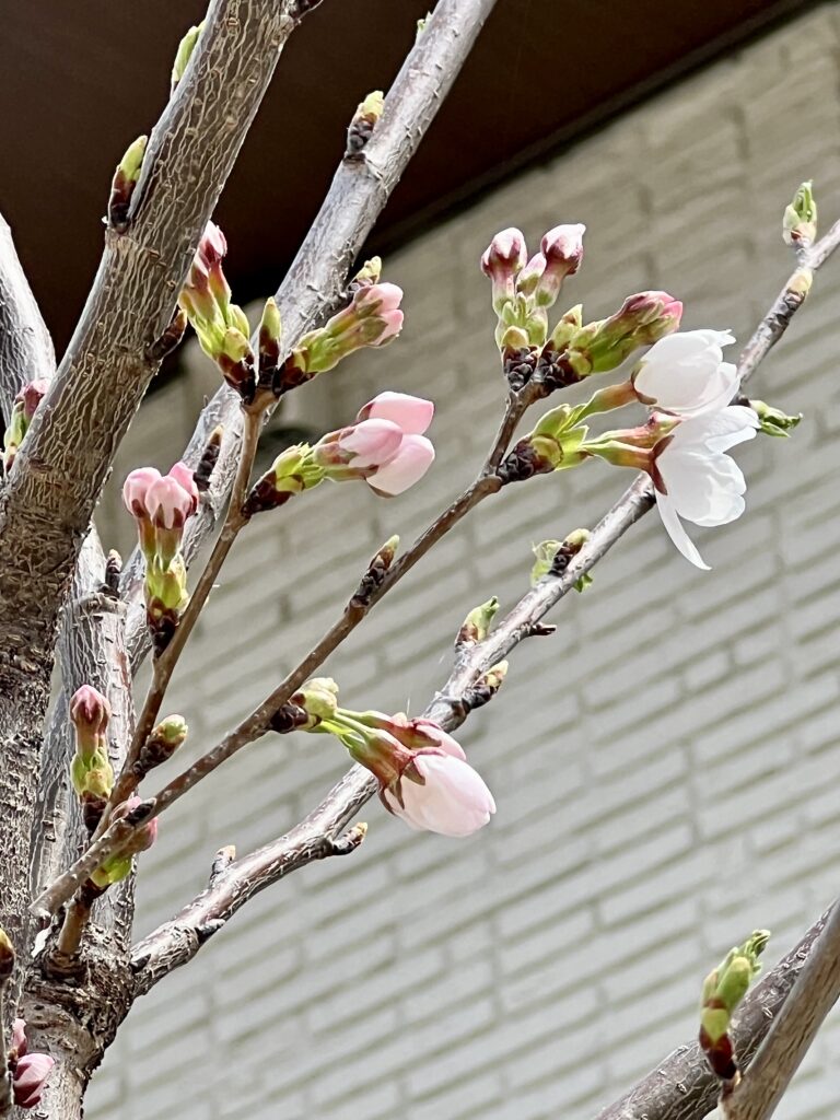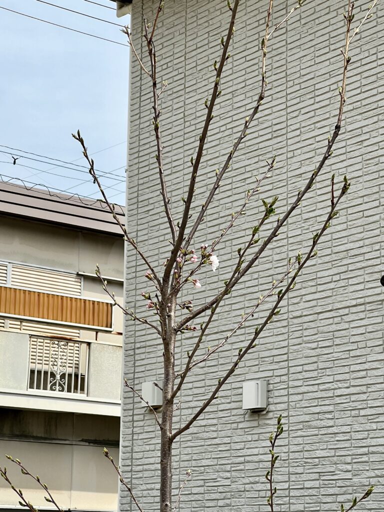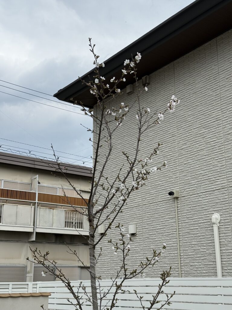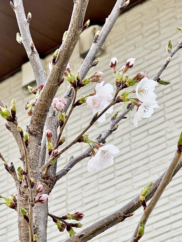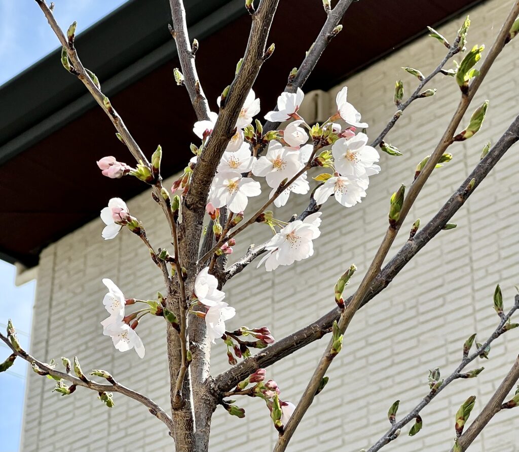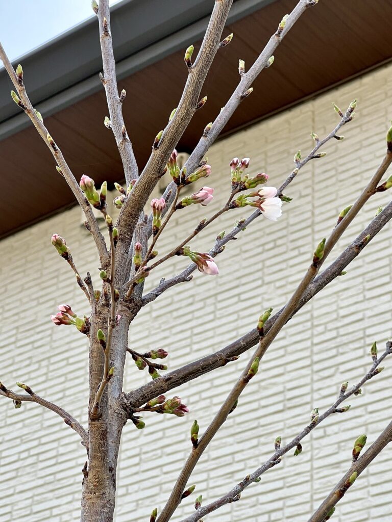 2026年3月29日には桜の花が5輪以上咲き、我が家の桜の「開花宣言」をしました。