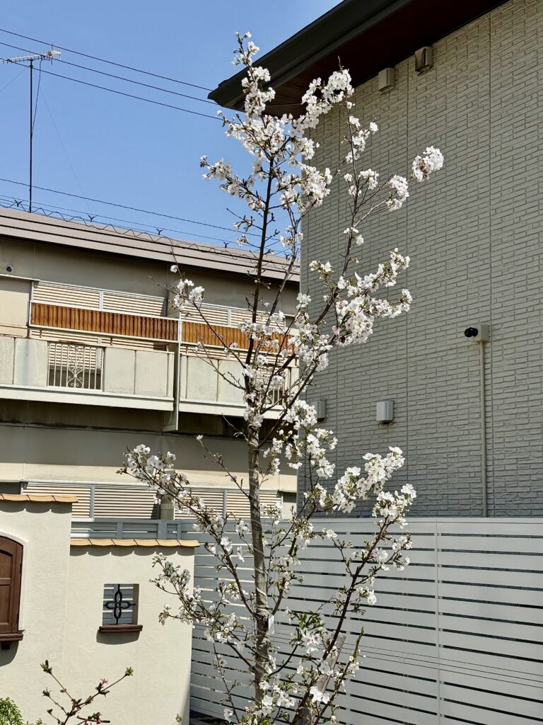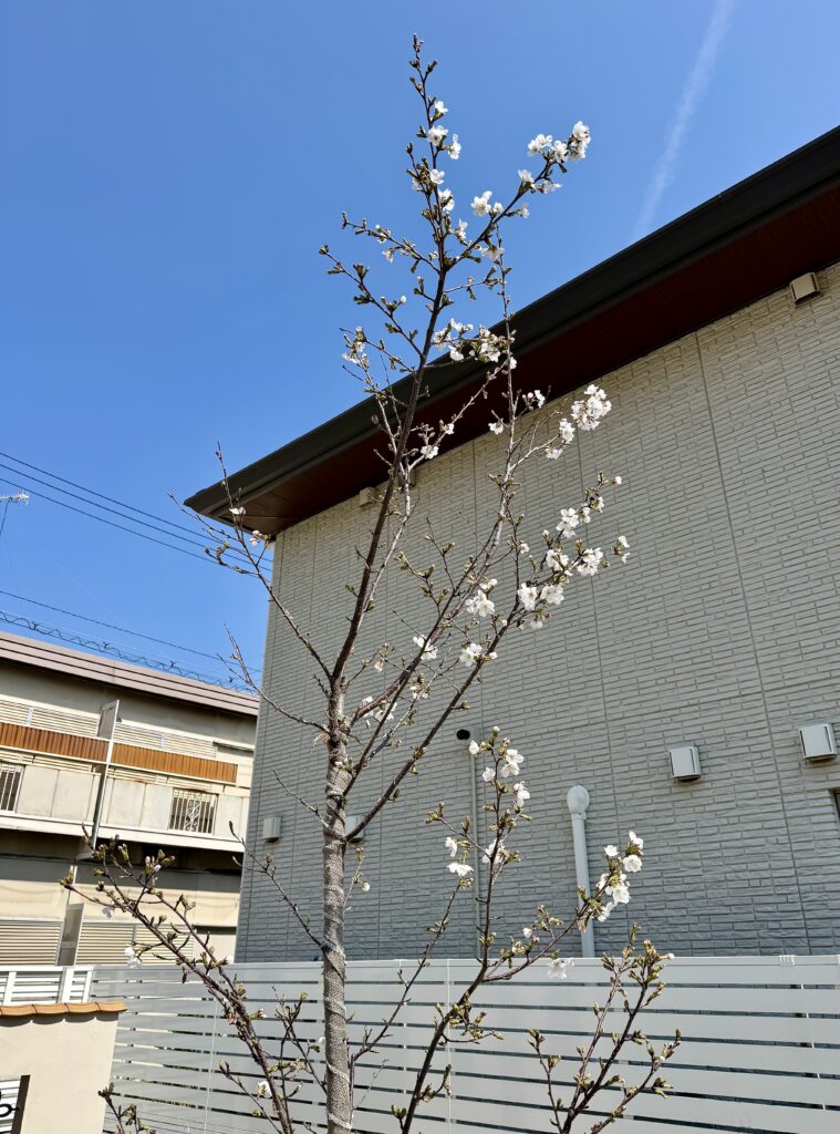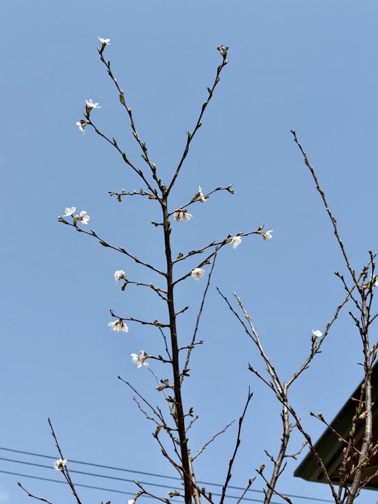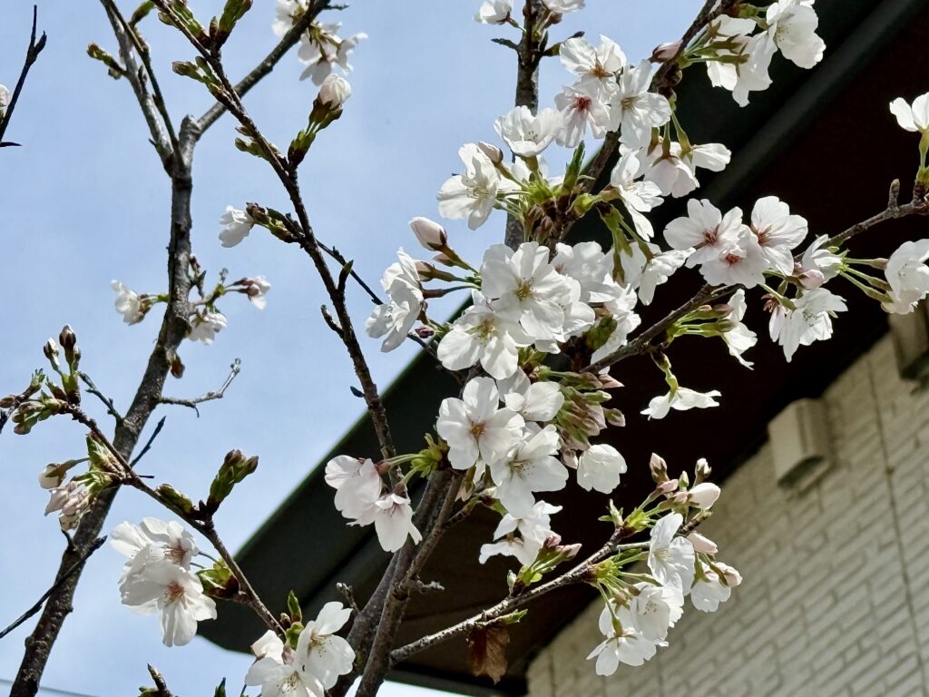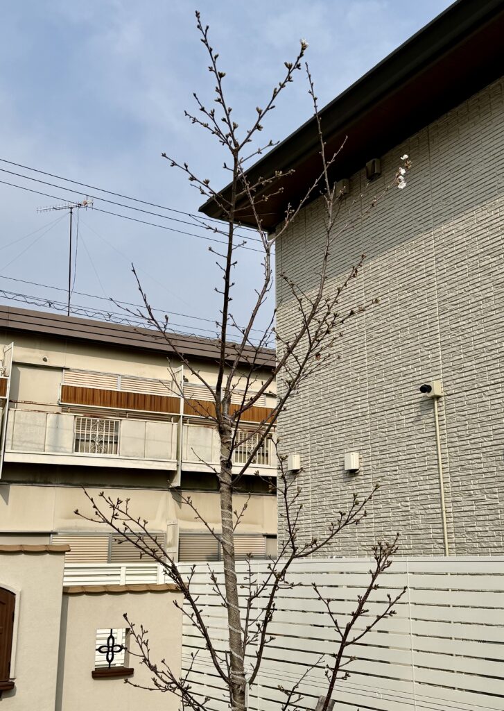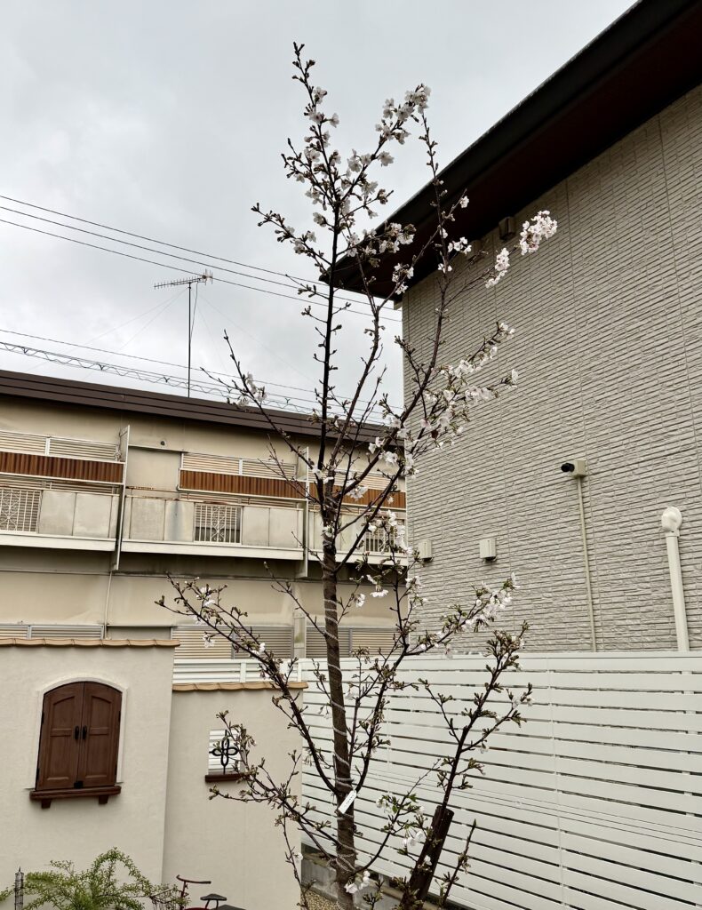 2026年3月29日には桜の花が5輪以上咲き、我が家の桜の「開花宣言」をしました。