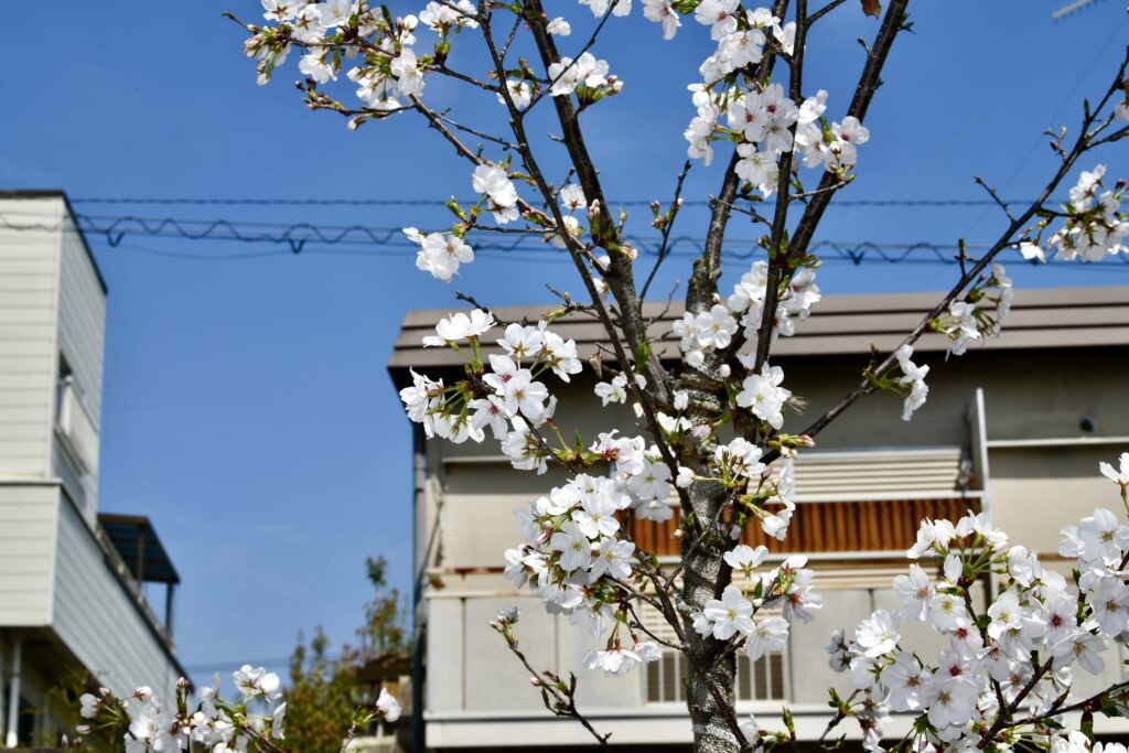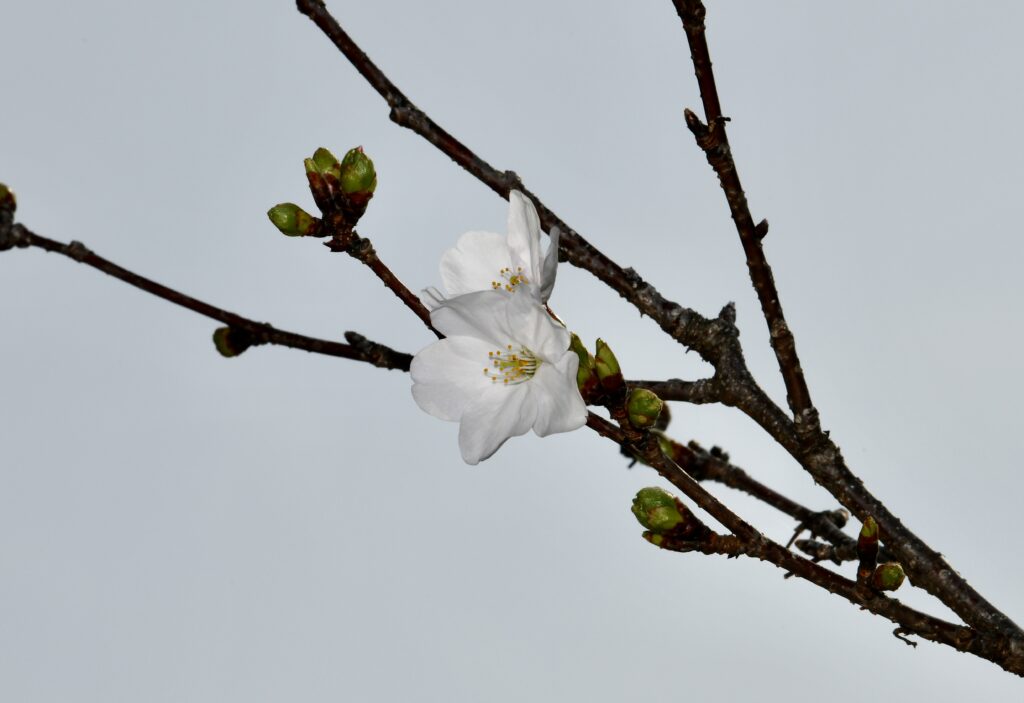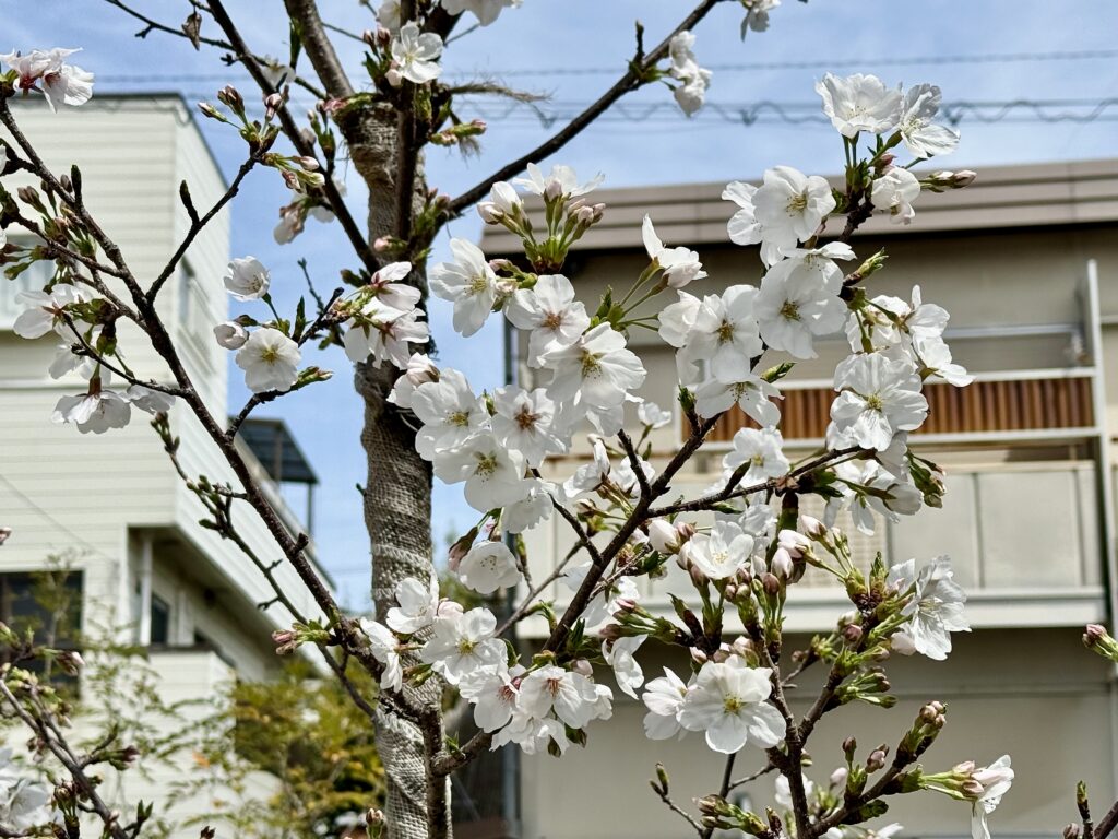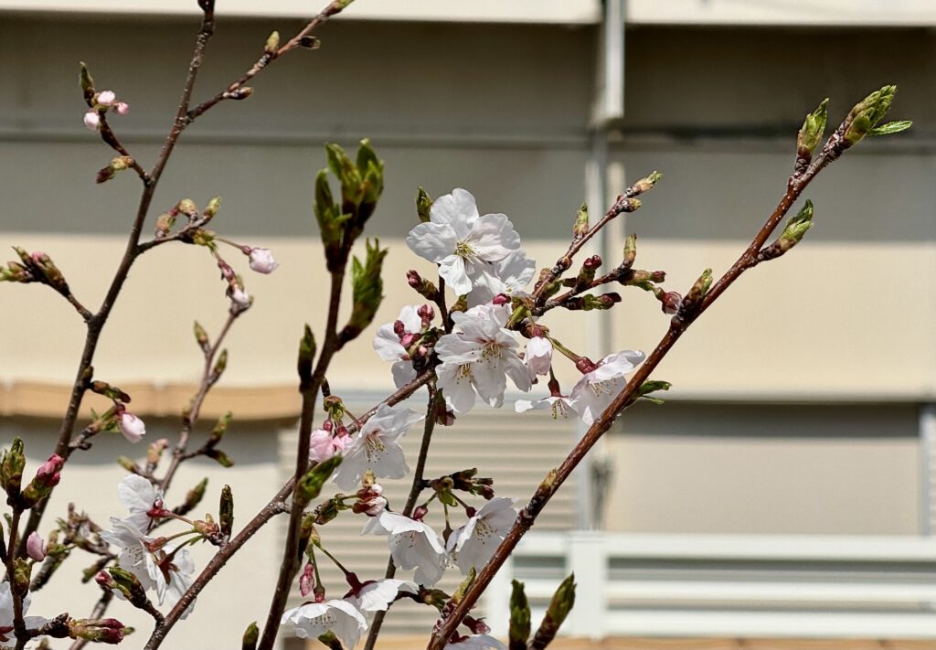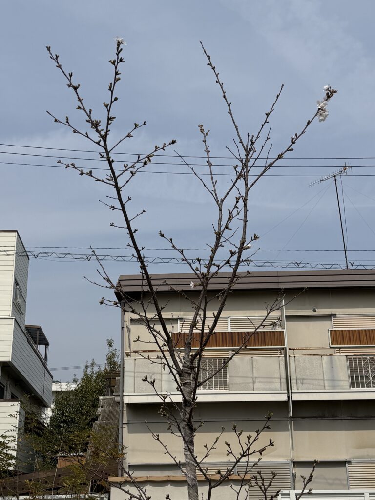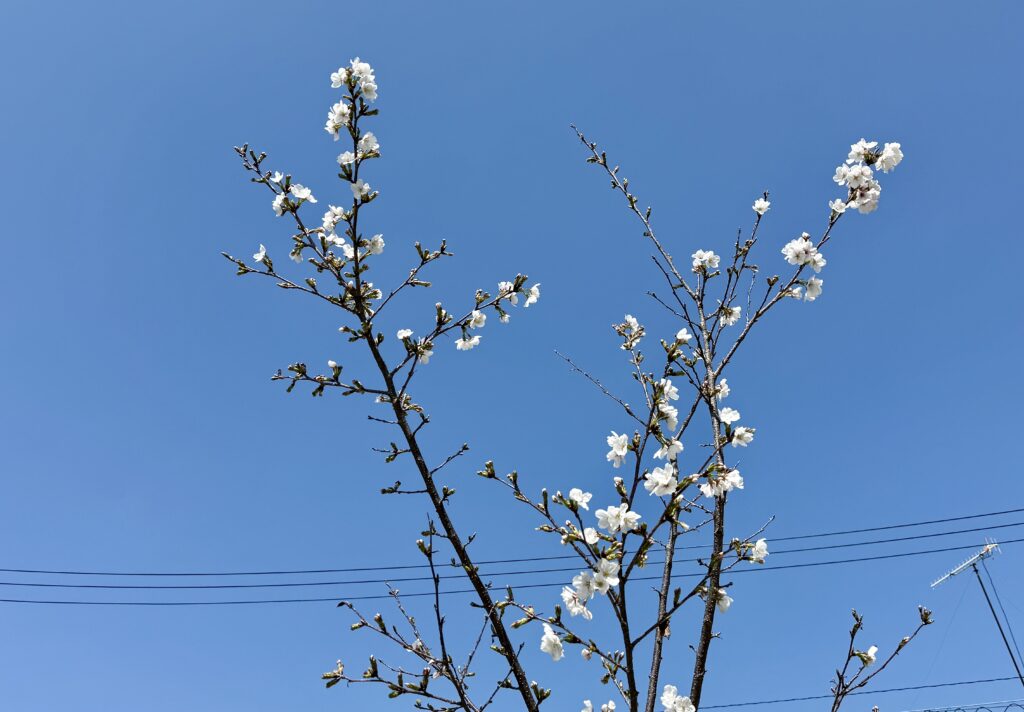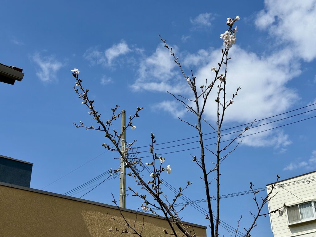 2026年3月29日には桜の花が5輪以上咲き、我が家の桜の「開花宣言」をしました。