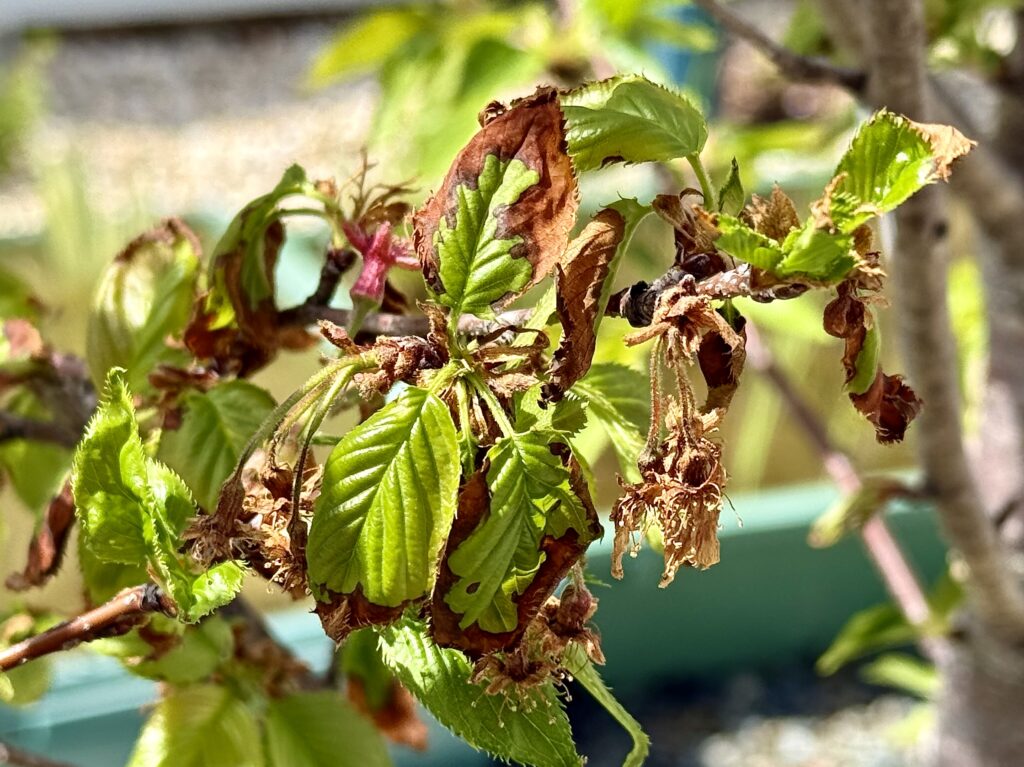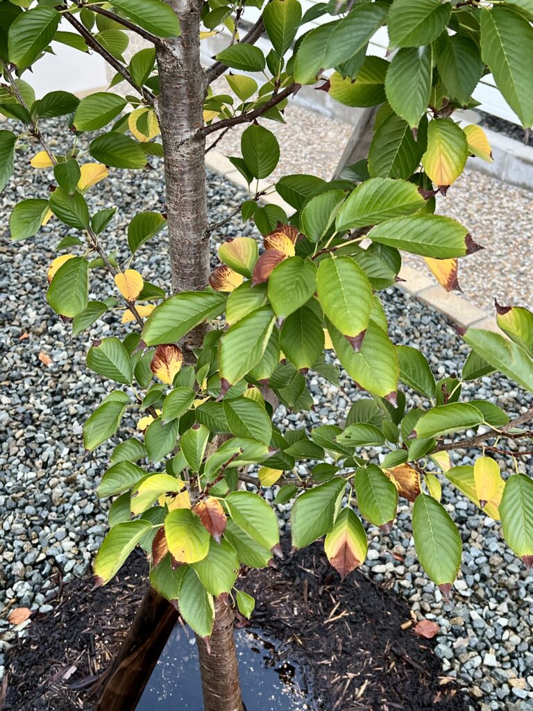 植えた年と2年目はうまく成長せずに弱り、葉焼けを起こして葉が落ちたり、死んだ枝を剪定したこともありました。