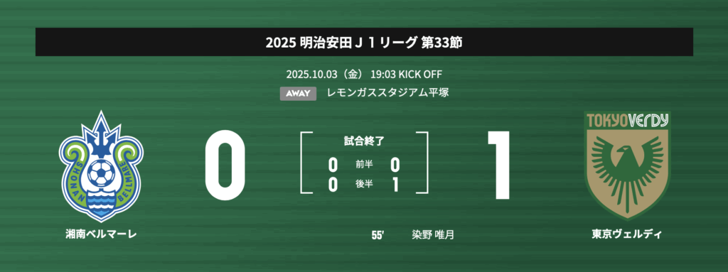 湘南ベルマーレ | 0 - 1 | 東京ヴェルディ |