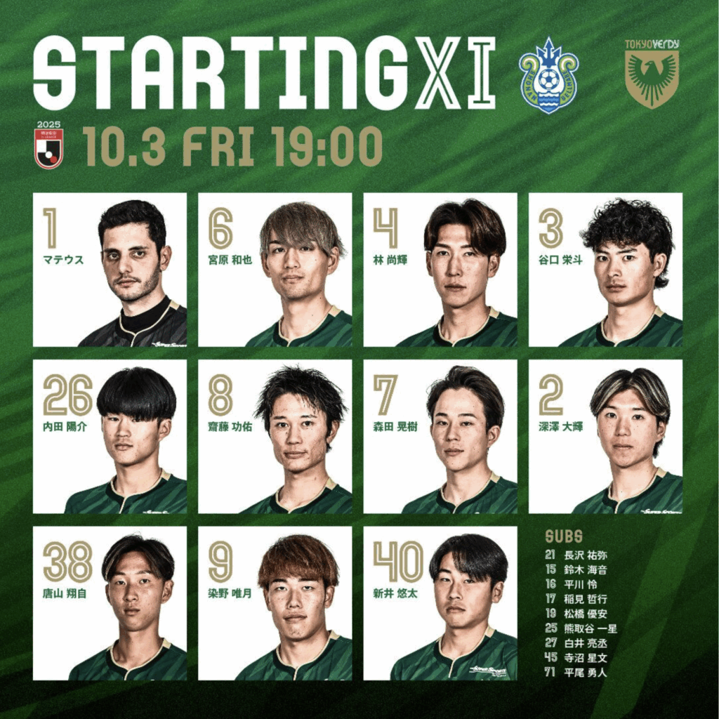 湘南ベルマーレ: 真田幸太;大岩一貴、舘幸希、大野和成、松村晟怜、藤井智也、小野瀬康介、ゼ・ヒカルド、平岡大陽、鈴木章斗、渡邊啓吾 東京ヴェルディ: GK:マテウス DF:宮原和也、林尚輝、谷口栄斗 MF:内田陽介、齋藤功佑、森田晃樹、深澤大輝、唐山翔自(46分松橋優安)、新井悠太 OF:染野唯月 | ||
