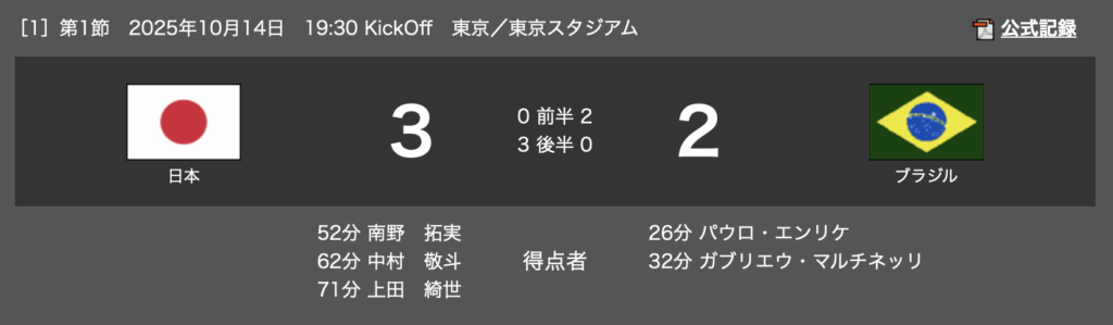 キリンチャレンジカップ2025 東京スタジアム 2025.10.14