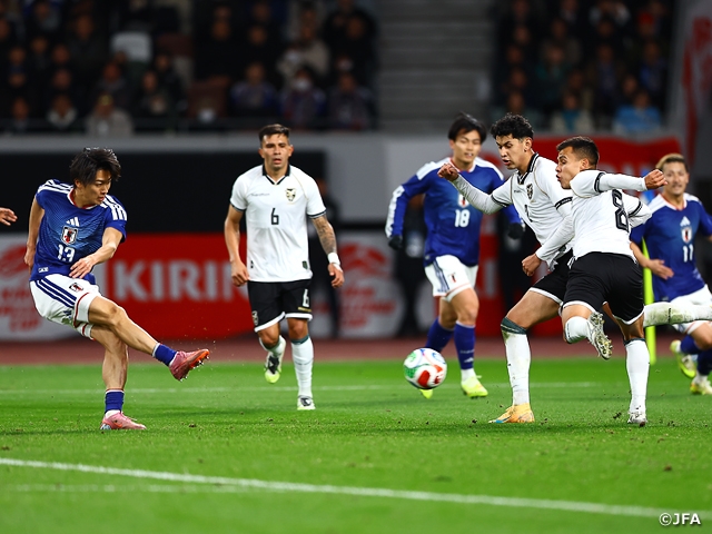 | 日本: GK:早川友基 DF:谷口彰悟、板倉滉、瀬古歩夢、菅原由勢(46分堂安律) MF:遠藤航、鎌田大地(77分藤田譲瑠チマ)、南野拓実(67分中村敬斗)、久保建英(67分町野修斗)、前田大然(82分後藤啓介) OF:小川航基(67分上田綺世) ボリビア: ビスカーラ;アロヨ、メディナ、トーレス、R・フェルナンデス、H・クエジャル、テルセロス、ビジャミル(76分ビジャロエル)、E・バカ(46分トメ)、モンテイロ、ナバ | ||