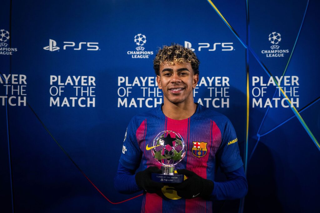 後半3分、ダニ・オルモの素晴らしいスルーパスを受けたヤマルが中に折り返したボールをレバンドフスキが決めて同点。