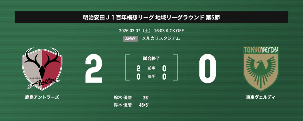 鹿島アントラーズ 2-0 東京ヴェルディ
