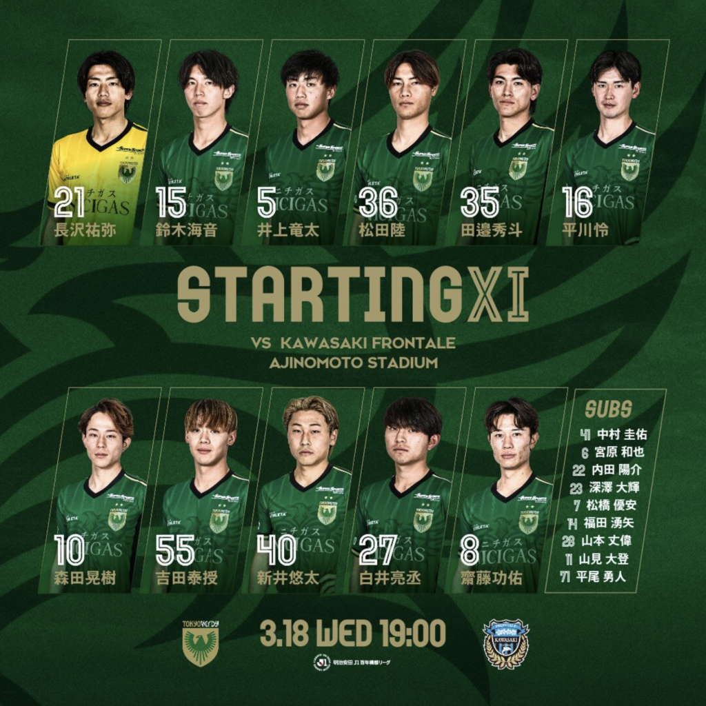 | 東京ヴェルディ: (スタメン)長沢祐弥;井上竜太、鈴木海音、松田陸、森田晃樹、平川怜、田邉秀斗、吉田泰授、齋藤功佑、白井亮丞、新井悠太 川崎フロンターレ: (スタメン)ブローダーセン;松長根悠仁、谷口栄斗、丸山祐市、山原怜音、山本悠樹、橘田健人、脇坂泰斗、紺野和也、マルシーニョ、エリソン | ||