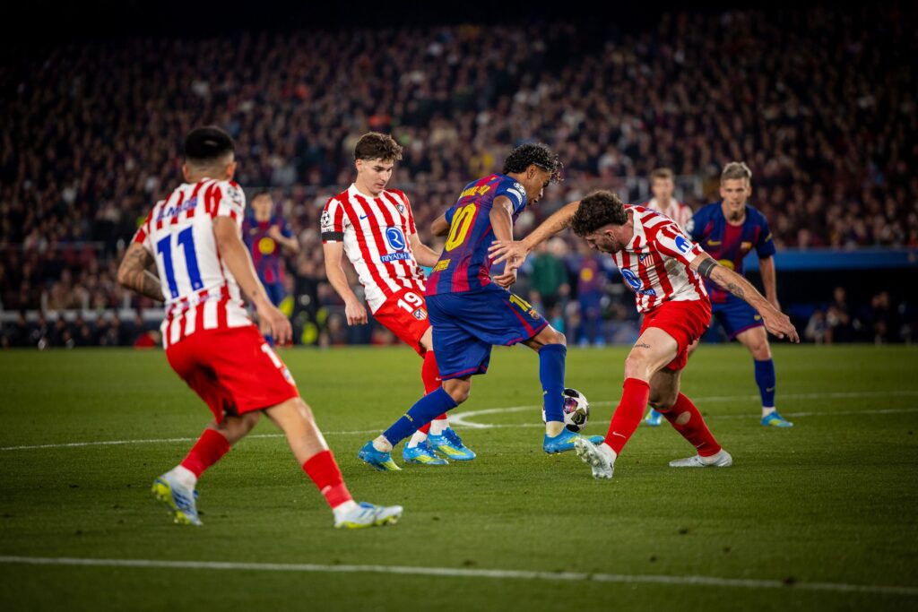 ヤマルのドリブルはキレキレでしたが、なかなかシュートまではいきません。