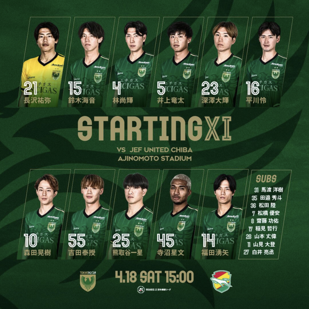 | 東京ヴェルディ: (スタメン)長沢祐弥;林尚輝、井上竜太、鈴木海音、森田晃樹、平川怜、深澤大輝、吉田泰授、福田湧矢、熊取谷一星、寺沼星文 ジェフ千葉: (スタメン)ホセ・スアレス;高橋壱晟、久保庭良太、河野貴志、日高大、前貴之、姫野誠、安井拓也、イサカゼイン、呉屋大翔、石川大地 | ||